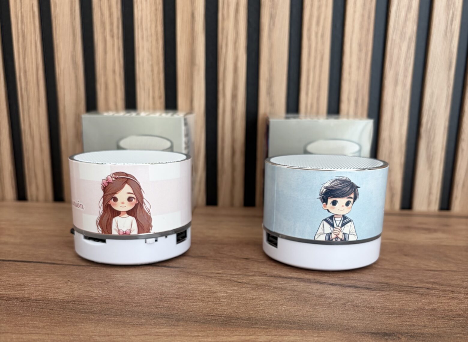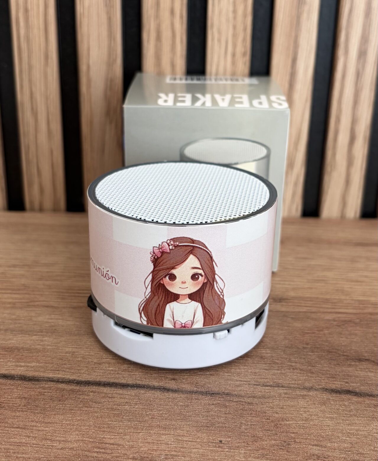 Altavoz inalámbrico Primera Comunión, por bluetooth, incluye función de manos libres para llamadas, ranura para tarjetas micro SD y radio FM.