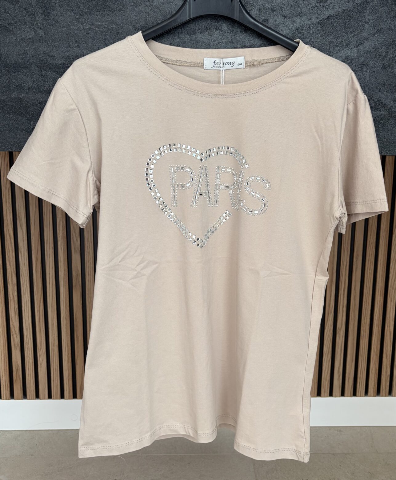 Camiseta París en color beige con pedrería, talla S/M
