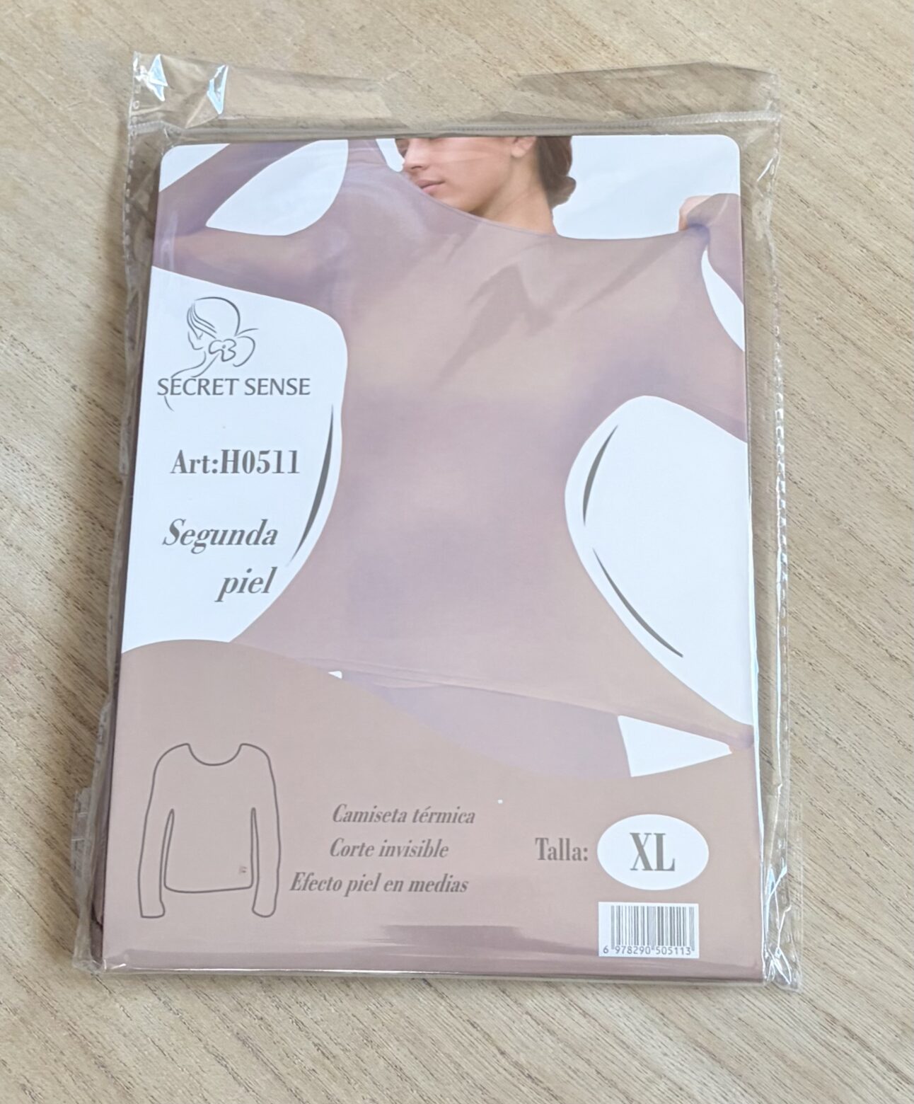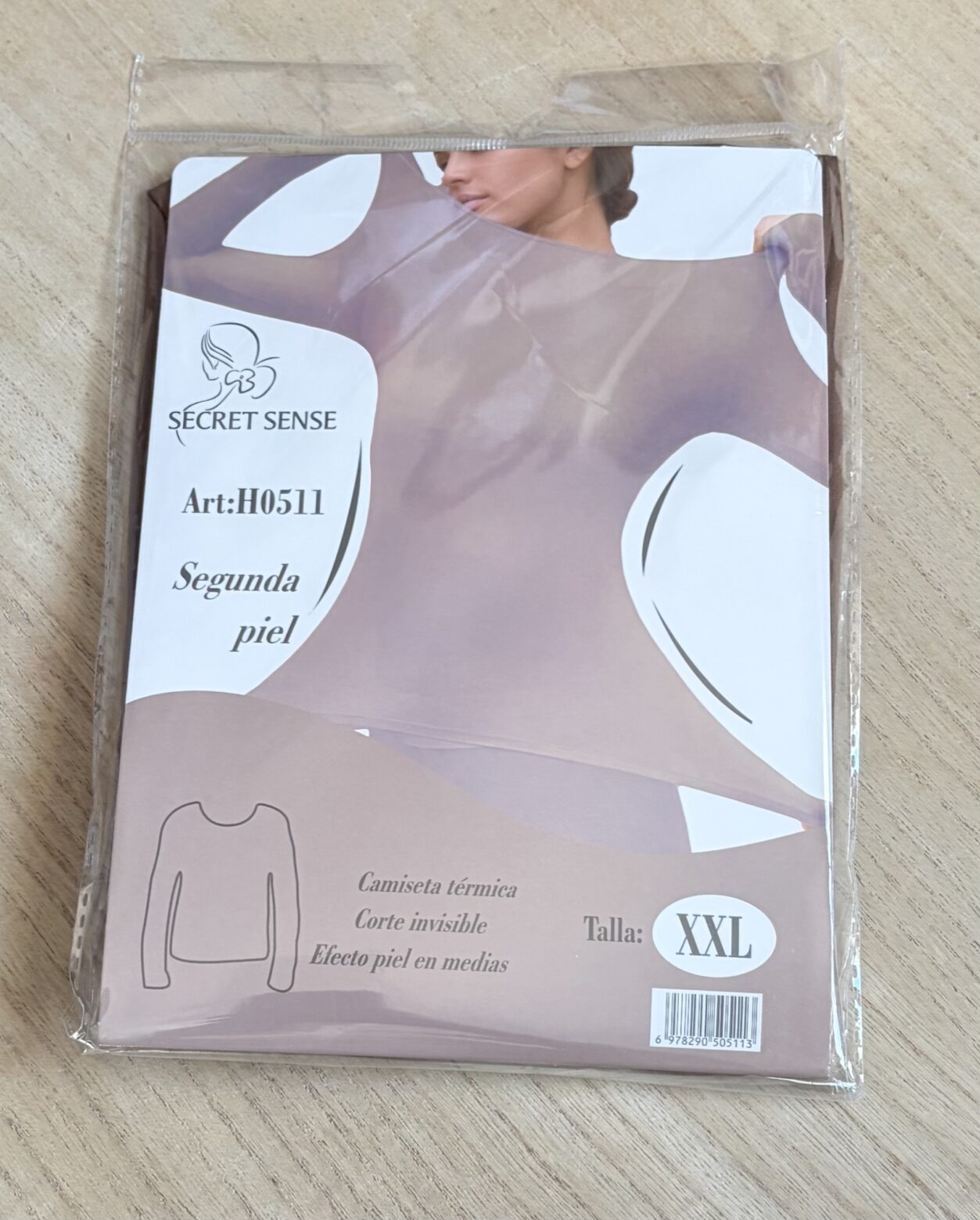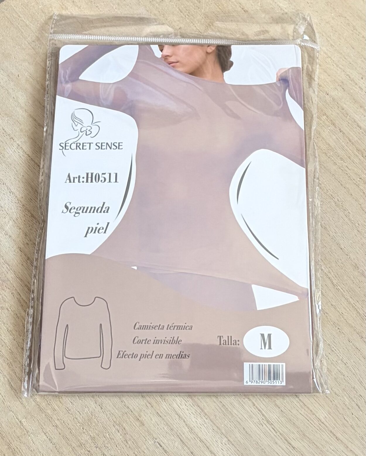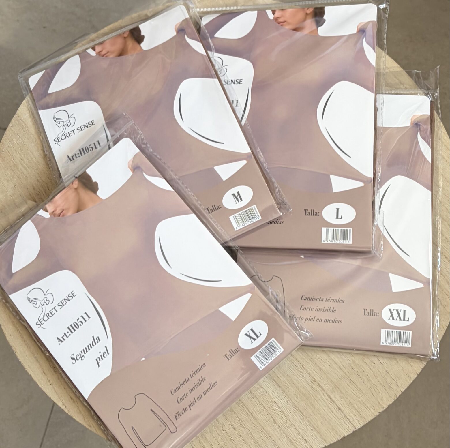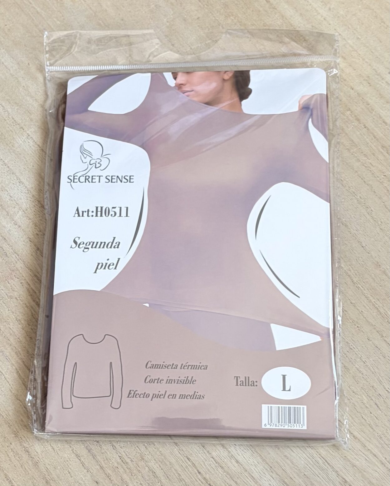 Camiseta térmica 2 piel, corte invisible, efecto piel en medias, color tierra, marca Secret Sense.